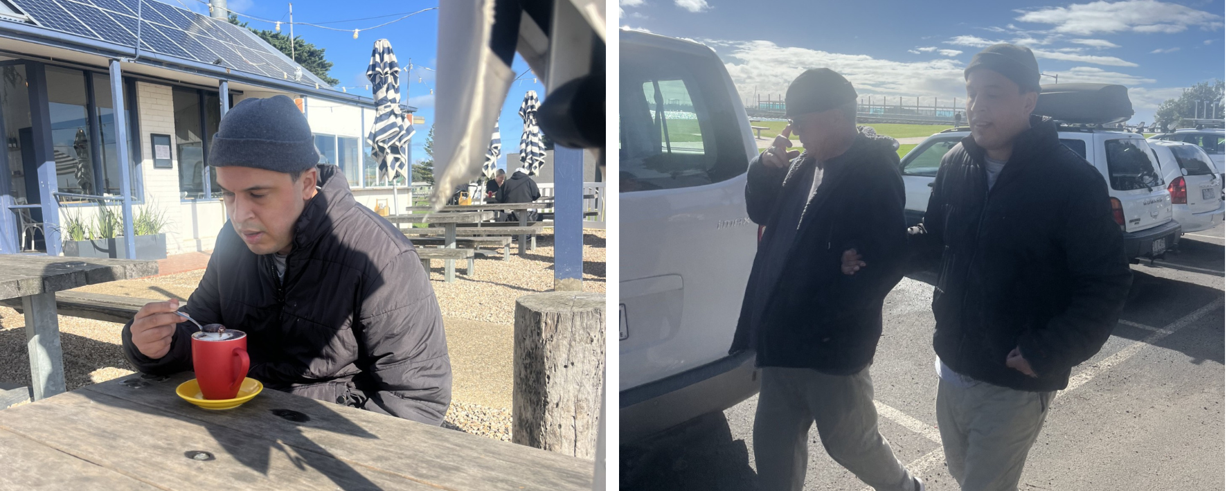 Pictured: Michael enjoying coffee during an outing, thanks to the support from Gateways’ Ormond Road team.